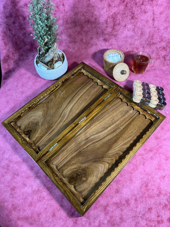 تخته نرد تک بازی ریشه گردو از این نوع تخته نرد ها فقط یک عدد موجود هست و شما دیگه لنگه ی اینکارو جایی نمیبینیم این تخته نرد سه لایه پلی استر ایستاده خورده و سه لولا داره و از تخته نرد هایه معمولی عمیق تر هستش امیدوارم که از داشتن این اثر لذت ببرید 🌹