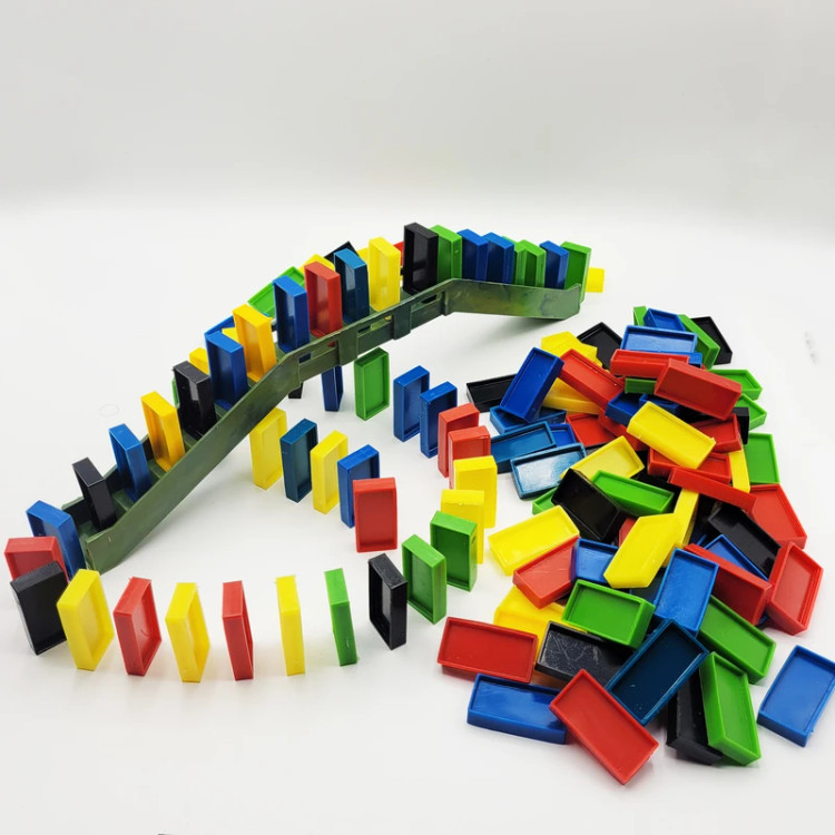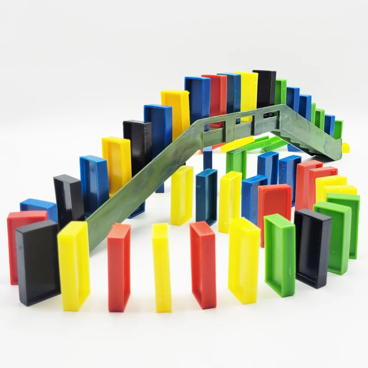 بازی دومینو متشکل از مهره های مستطیل شکل می باشد که از کنار هم قرار گرفتن این مهره ها می توان اشکال و تصاویر جذابی به وجود آورد و با وارد کردن ضربه به اولین مهره، حرکت دومینو آغاز و حاصل خلاقیت فرد با ریختن مهره ها مشخص شده و لذت زیادی برای فرد و بازدیدکنندگان آن ایجاد می نماید. مهره های دومینو را می توان به حروف الفبا تشبیه کرد و همان طور که می توانیم با حروف الفبا بی شمار کلمه و جمله بسازیم، با مهره های دومینو هم می توان بی شمار طرح پیاده کرد که این خصوصیت باعث رشد خلاقیت افراد و عدم خستگی آنها از این سرگرمی می شود.