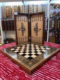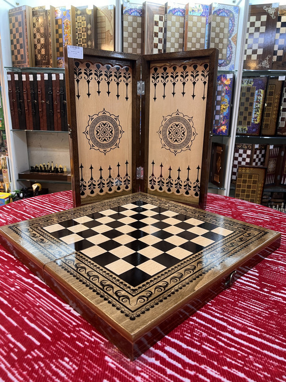تخته نرد و شطرنج دور چوب روکش چوب راش طرح خورشید و فروهر