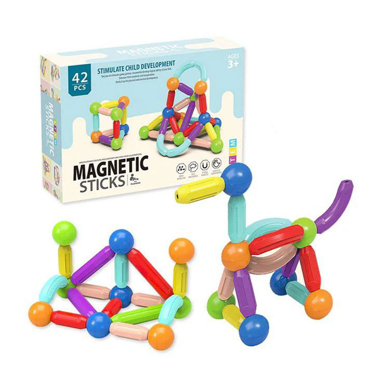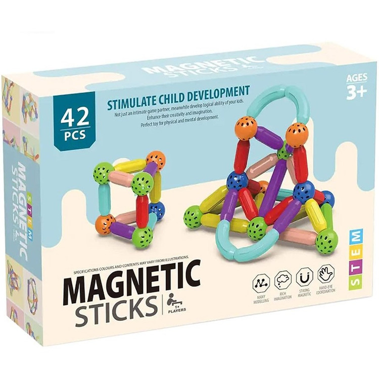 اسباب بازی مگنتی 42 قطعه به کودک شما کمک می کند تا نهایت استفاده را از خلاقیتش ببرد و اشکال مختلف و متنوعی مانند ماشین، خانه، حیوانات و... بسازد. این میله و مهره مغناطیسی 42 تکه از 10 توپ فلزی، 10 میله بلند، 15 میله کوتاه و 7 میله منحنی تشکیل شده است.