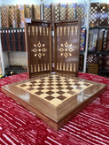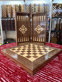 تخته نرد و شطرنج دور چوب روکش چوب گردو معرق دست پلی استر خورده ساده و شیک