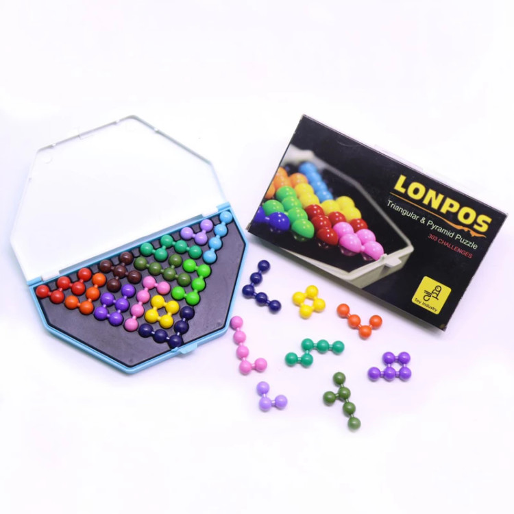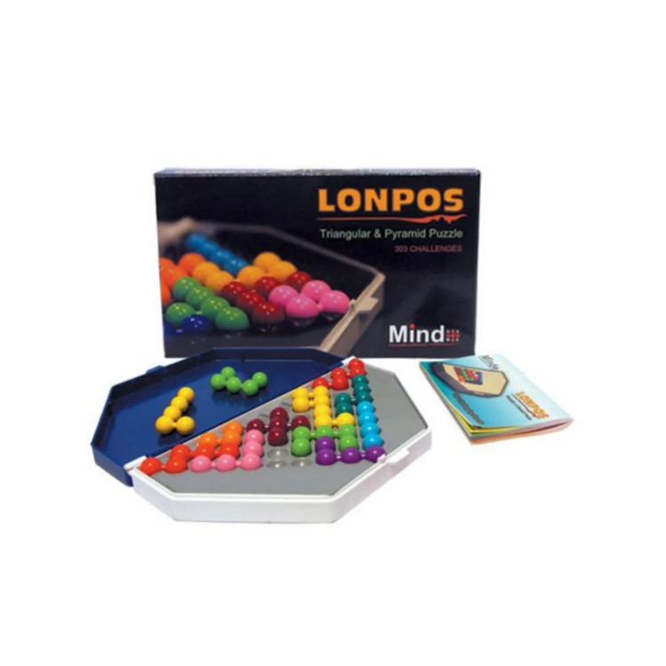 لونپوس یک نوع پازل متفاوت و معمایی است برای کسانی که ادعا میکنند خیلی باهوش هستند. شاید در سخت بودن و جذابیت با مکعب روبیک قابل رقابت باشد. در این بازی 303 معمای مختلف، از آسان به سخت طراحی شده است. معماهای این مجموعه برای تمامی گروه های سنی 7 سال به بالا، مناسب است. در هر معمای داخل دفترچه، بخشی از خانههای صفحه پر شده است و شما باید با استفاده از تجسم فضایی خود و تمرکز روی مهره های باقیمانده، جاهای خالی را پر کنید. هر چه به سمت معماهای پیشرفته تر بروید، پر کردن خانه ها، دقت و تمرکز بیشتری می طلبد. این بازی تک نفره،علاوه بر تقویت هوش فضایی شما، قدرت حافظه را نیز درگیر می کند تا از تکرار اشتباهاتتان جلوگیری کنید و یک راه خطا را دو بار نروید.