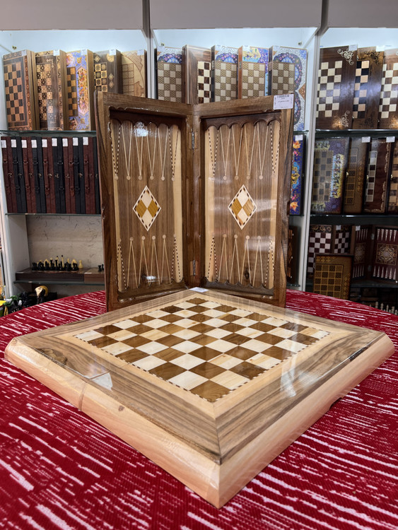 تخته نرد و شطرنج سنندج چوب گردو معرق دست و پلی استر خورده ساده و شیک