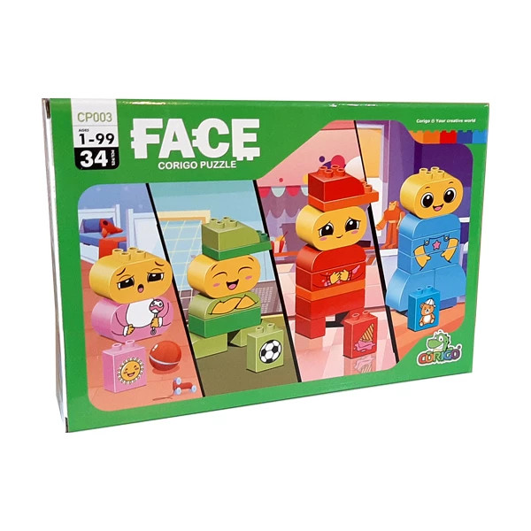 لگو پازلی کریگو فیس یک بازی چند منظوره ی خلاقانه برای افزایش مهارت دستورزی، خلاقیت و شناخت احساسات به کودکان است. در این بازی کودکان با کنار هم قرار دادن قطعات لگو آدمک هایی با شکل های مختلف می سازند که هر شکل نمایانگر یک نوع احساس است. این بازی از 34 قطعه لگوی درشت قطعه ی باکیفیت، با رنگ های زیبا و چاپ خوب ساخته شده که با آجره های لگو ی دوپلو چفت می شوند. از اهمیت شناخت احساسات برای کودکان تقریبا همه با خبریم زیرا که اگر کودک به احساسات خودش آشنا باشد گفتگوی موثر با او بهتر و راحت تر صورت می گیرد. لگو پازلی کریگو فیس می تواند یک ابزار کمکی باشد تا در خلال داستان و نمایش کودکان را با این مساله مهم آشنا