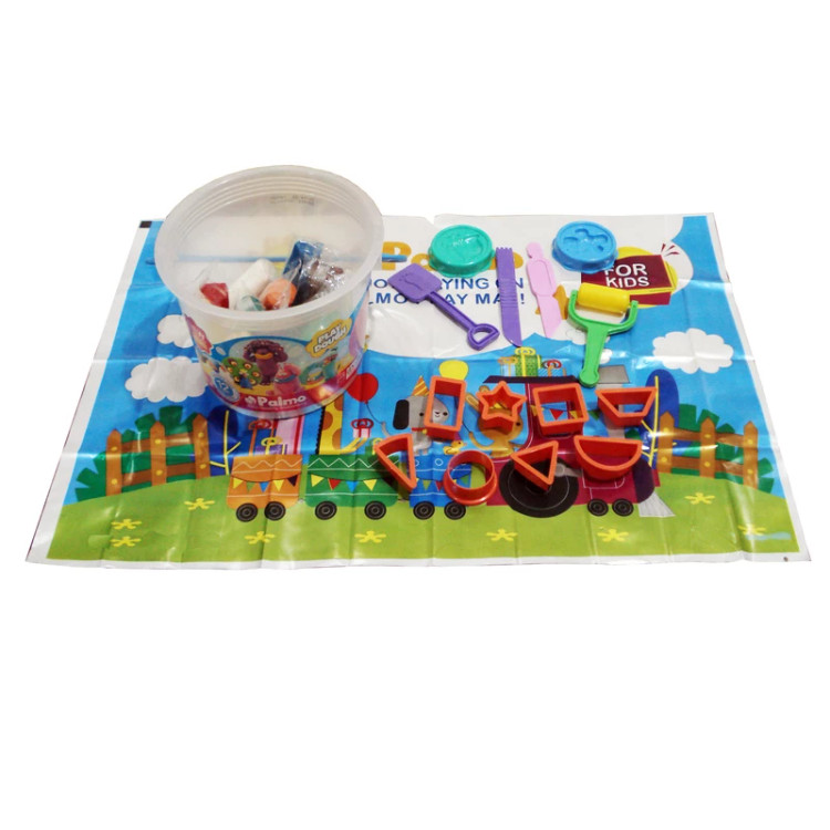 ۱۲ عدد خمیر بازی ۸ عدد قالب اشکال هندسی ۱ عدد غلطک ۲ عدد قالب حیوان بیلچه کوچک ۱ عدد ۲ عدد کاردک پلاستیکی سفره پلاستیکی کوچک ۱ عدد