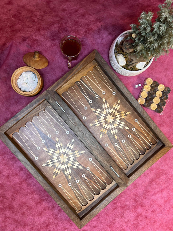 تخته نرد تمام گردو کاره درجه یک ارومیه چه از نظر منبت چه از نظر معرق واقعا بی نظیر و درجه یک هست اینکار این تخته نرد یک رنگ روغن خارجی خورده که هم ذات چوب رو بهتون نشون بده هم اینکه تخته نرد رو ضد خش میکنه امیدوارم از دیدن و داشتن این اثر لذت ببرید🌹