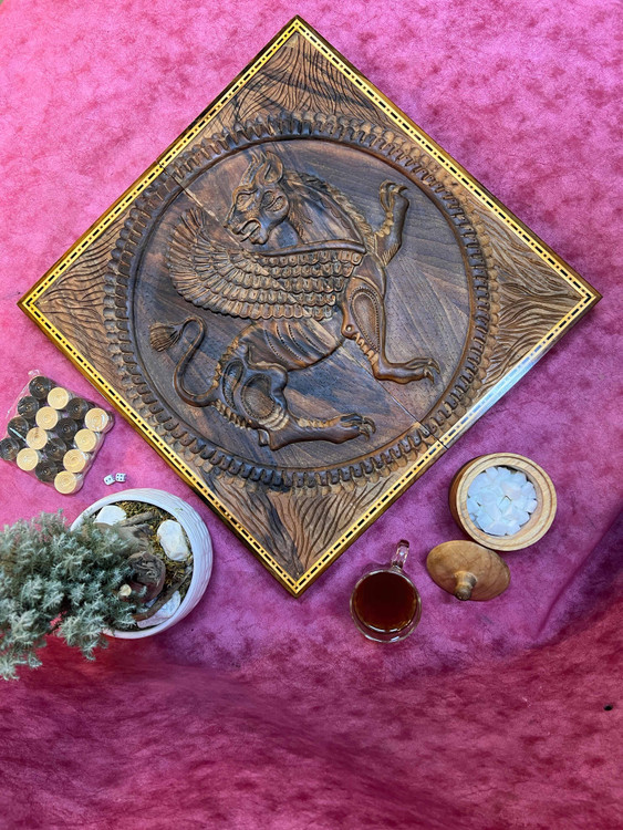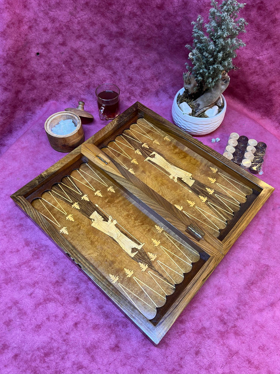 تخته نرد تمام گردو داخل کار معرق دست هستش و پشت کار منبت درجه یک ارومیه و رنگ کار هم لاک الکل هستش👌🏻