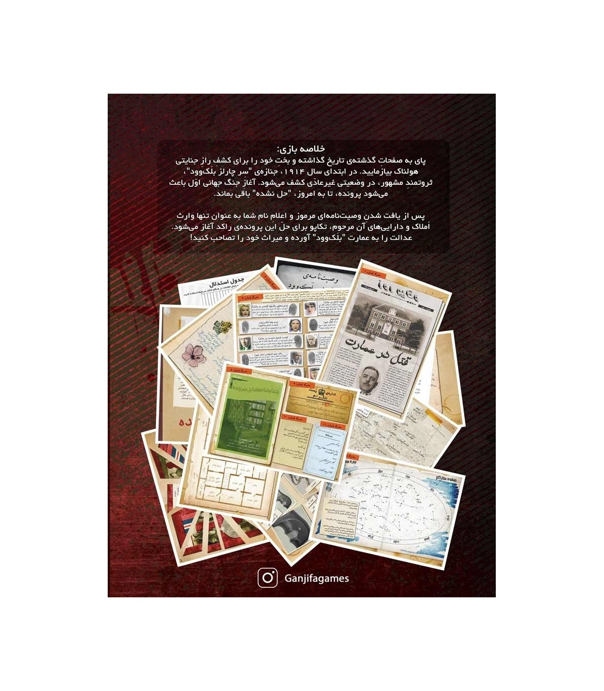 پاي به صفحاتِ گذشتهي تاريخ گذاشته و بختِ خود را براي کشفِ رازِ جنايتي هولناک بيازماييد. در ابتداي سال 1914، جنازهي "سِر چارلز بلَکوود"، ثروتمندِ مشهور، در وضعيتي غيرعادّي کشف ميشود. آغازِ جنگ جهاني اوّل باعث ميشود پرونده، تا به امروز، "حل نشده" باقي بماند. پس از يافت شدنِ وصيتنامهاي مرموز و اعلامِ نام شما به عنوان تنها وارثِ اَملاک و داراييهاي آن مرحوم، تکاپو براي حلّ اين پروندهي راکد آغاز ميشود. عدالت را به عمارت "بلَکوود" آورده و ميراث خود را تصاحب کنيد! شما اکنون موظّفايد که: