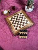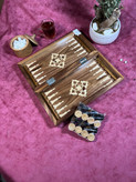 تخته نرد و شطرنج مسافرتی روکش گردو معرق دست پلی استر خورده ساده و شیک