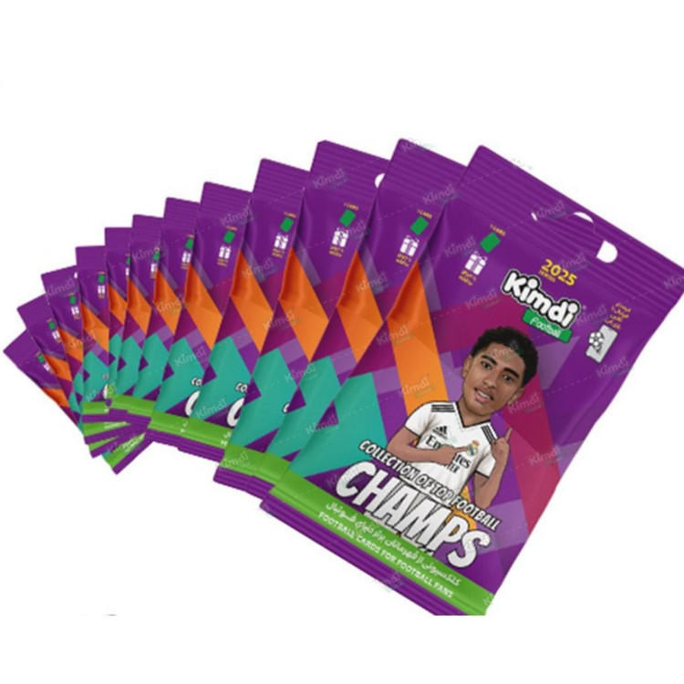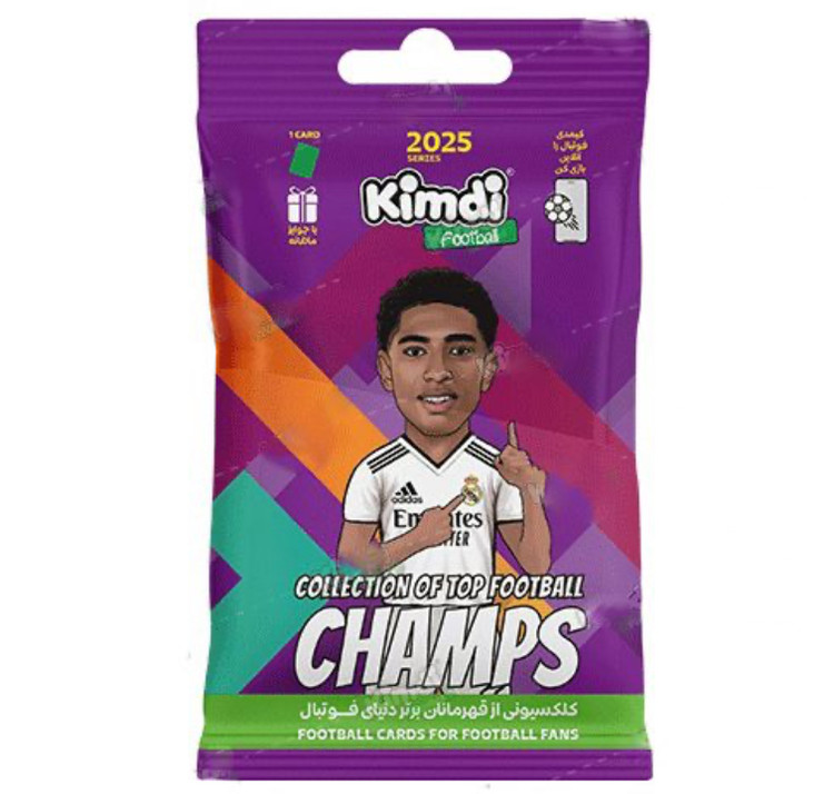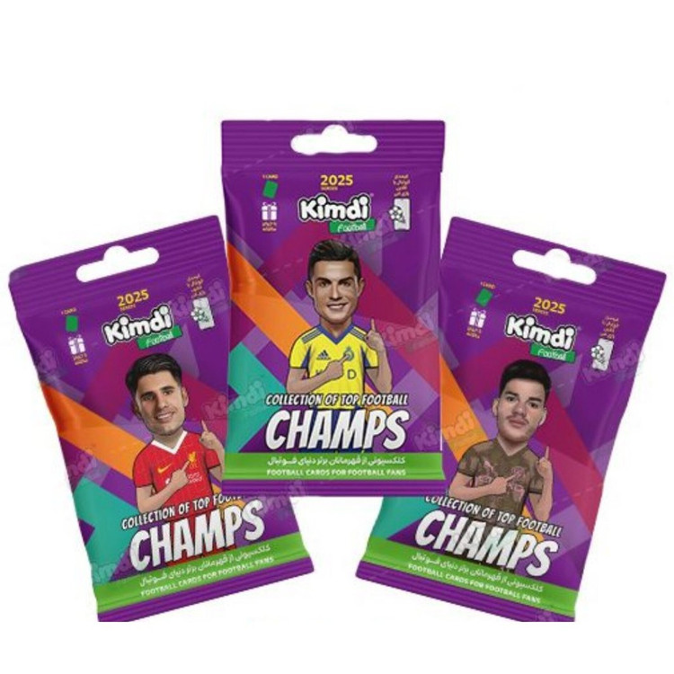 بسته های کیمدی فوتبال چمپس 2025 Champs شامل 1 عدد کارت و 1 عدد برچسب کارتی میباشند. روی کارت ها از عکس یک فوتبالیست به همراه مشخصات و امتیاز های اون بازیکن تشکیل شده است. پشت این کارت ها یک QR CODE بوده که با اسکن کردن اون میتونید ویدیو بیوگرافی اون بازیکن رو ببینید.برچسب ها هم عکس و مشخصات یک فوتبالیسته که میتونید به هرجایی که دوس دارید بچسبونید.